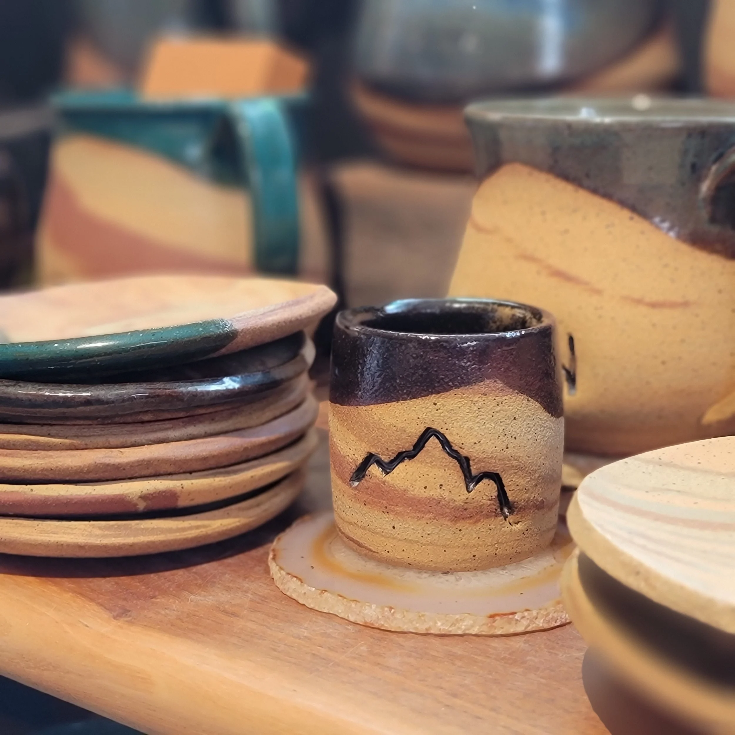 Three venues I had my ceramics in closed down over the past couple years. I still have ceramics at Brown Box Cafe in Kanab And as always The Tilted Kiln studio gallery carries my work. Now that I am in a more stable place with my health, I am looking to create and stock galleries again!